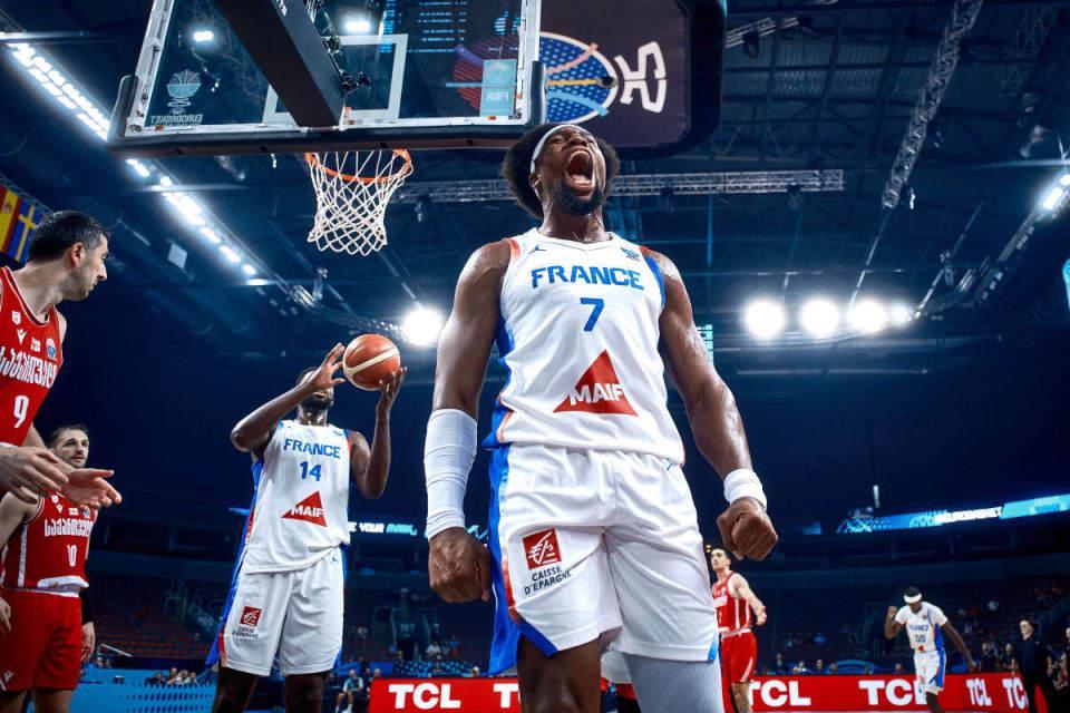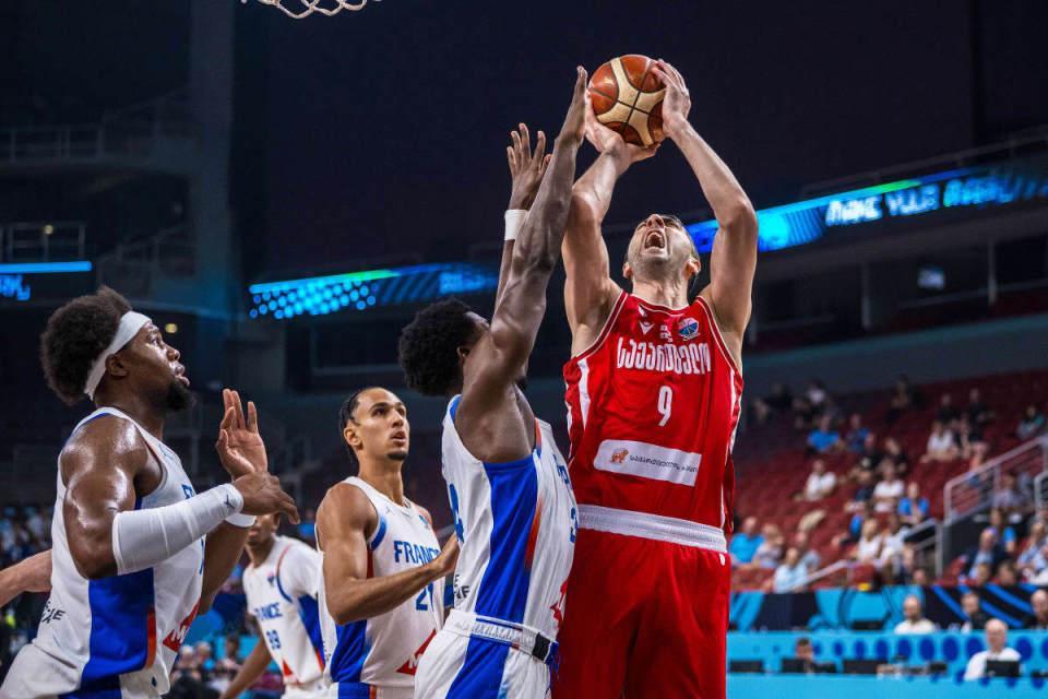 法国男篮小组赛4胜1负位列D组第一,格鲁吉亚男篮小组赛2胜3负位列C组第四。本场首节开局,科尔迪尼耶上篮命中首球,鲍德温里外开花引领7-0攻势,亚布塞莱三分与暴扣连得5分追分,申吉利亚上篮与三分命中,鲍德温也上篮扩大7分优势。科尔迪尼耶、亚布塞莱与弗朗西斯科联手打出9-2攻势追平比分,格鲁吉亚男篮一波6-1攻势重新取得领先,弗朗西斯科三分追分。鲍德温造犯规两罚全中,贾伊泰压哨抛射不中,首节结束法国男篮20-24落后格鲁吉亚男篮。