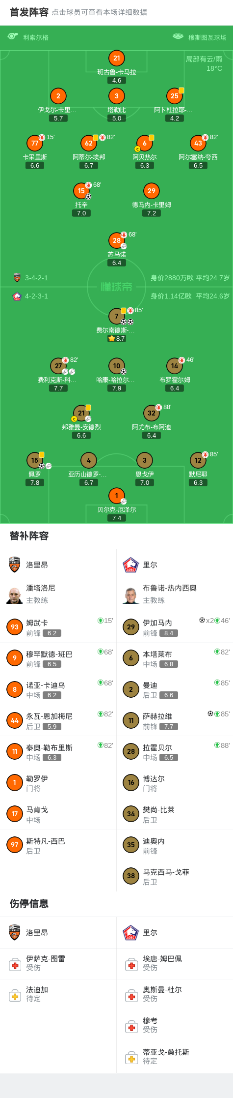 里尔7-1血洗洛里昂,费尔南德斯-帕尔多梅开二度,伊加马内两球