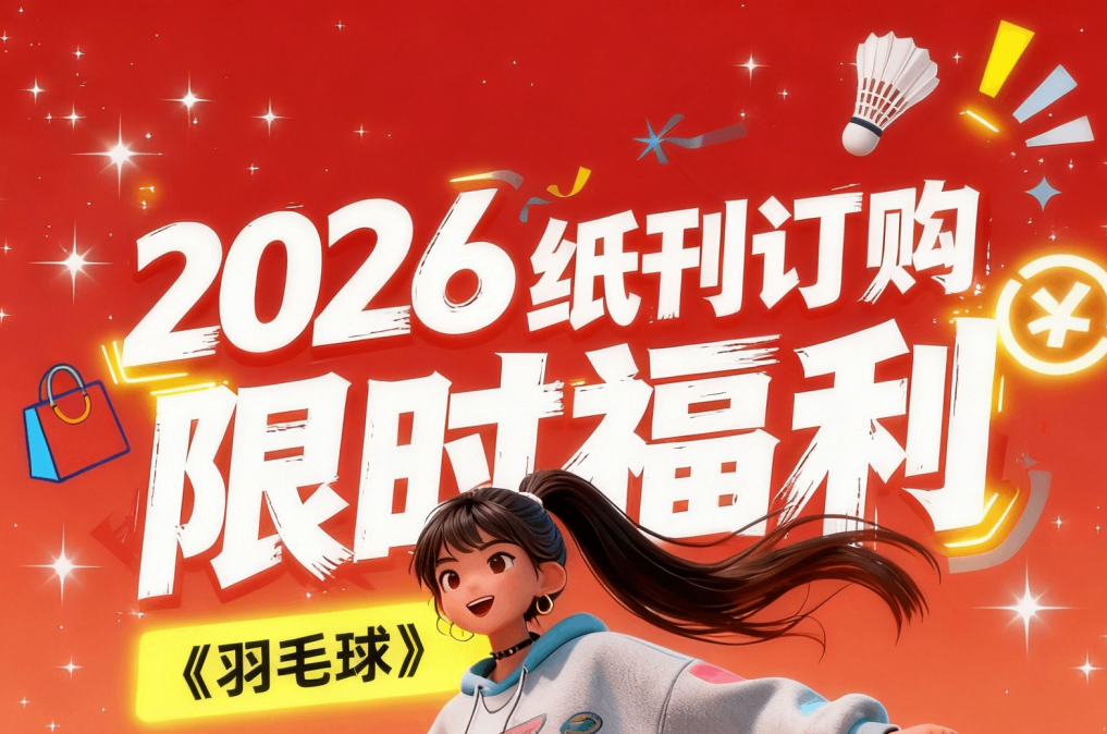 《羽毛球》2026全年纸刊预售开启!订全年纸刊送电子刊365天VIP阅读权限。快来订购吧,太优惠啦!