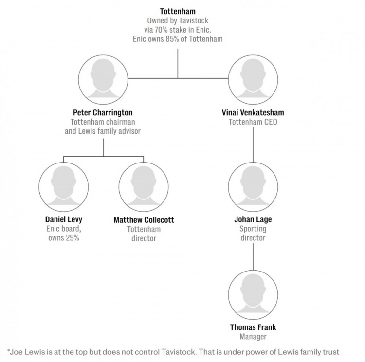 列维离开热刺一事,主要由88岁亿万富翁乔-刘易斯的两个孩子推动,他们现通过刘易斯家族信托控制了ENIC 70%股份。ENIC股份由塔维斯托克集团持有,该集团是家族投资公司。ENIC拥有热刺86.58%股份,是控制力量。ENIC剩余不到30%股份由列维持有。。